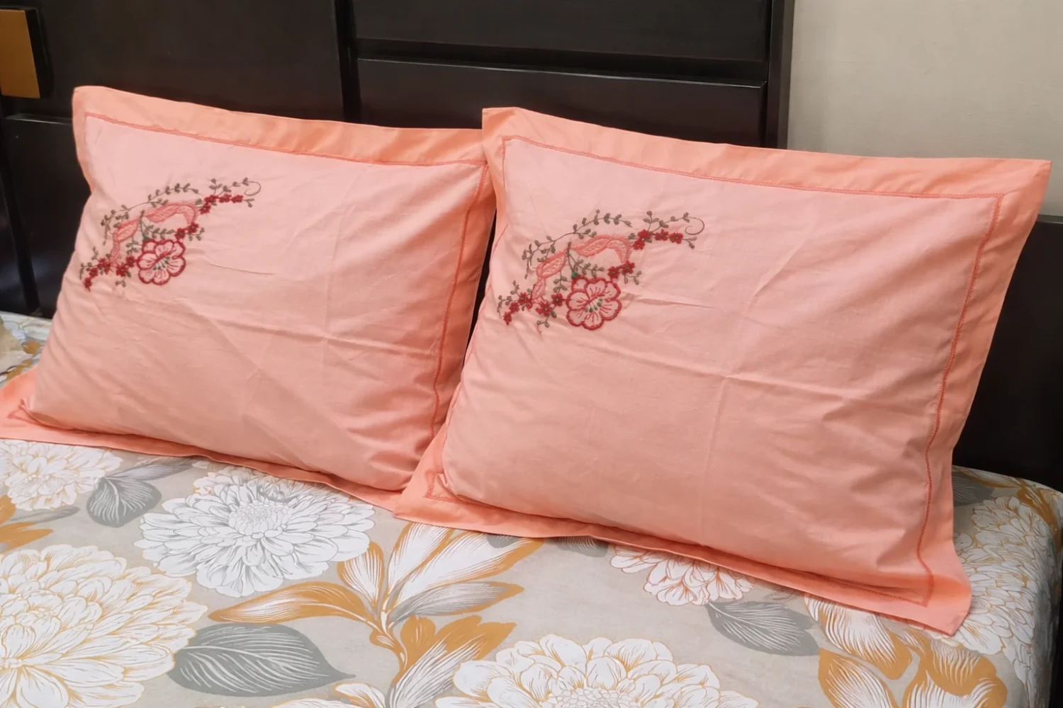 Pillow covers made from 100% pure cotton (200 TC) with elegant embroidery on the front and closure at the back. Soft, breathable, and durable fabric for a luxurious look.